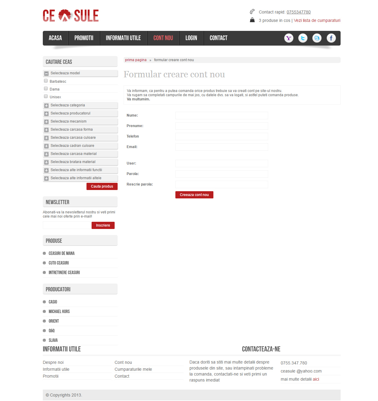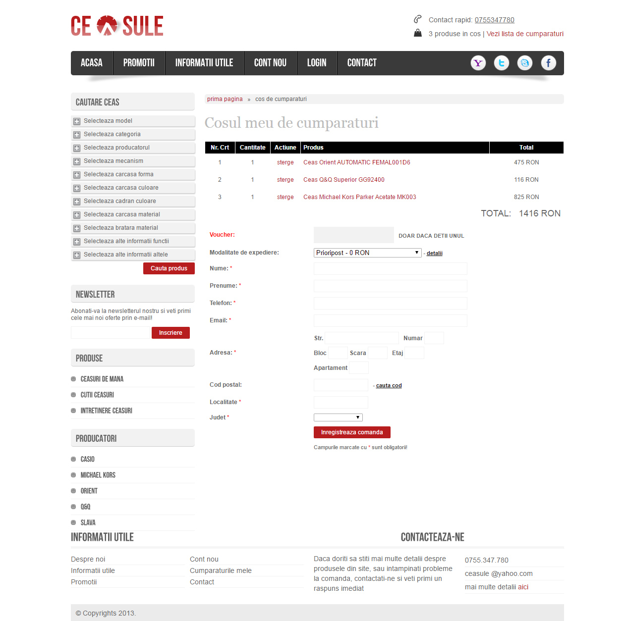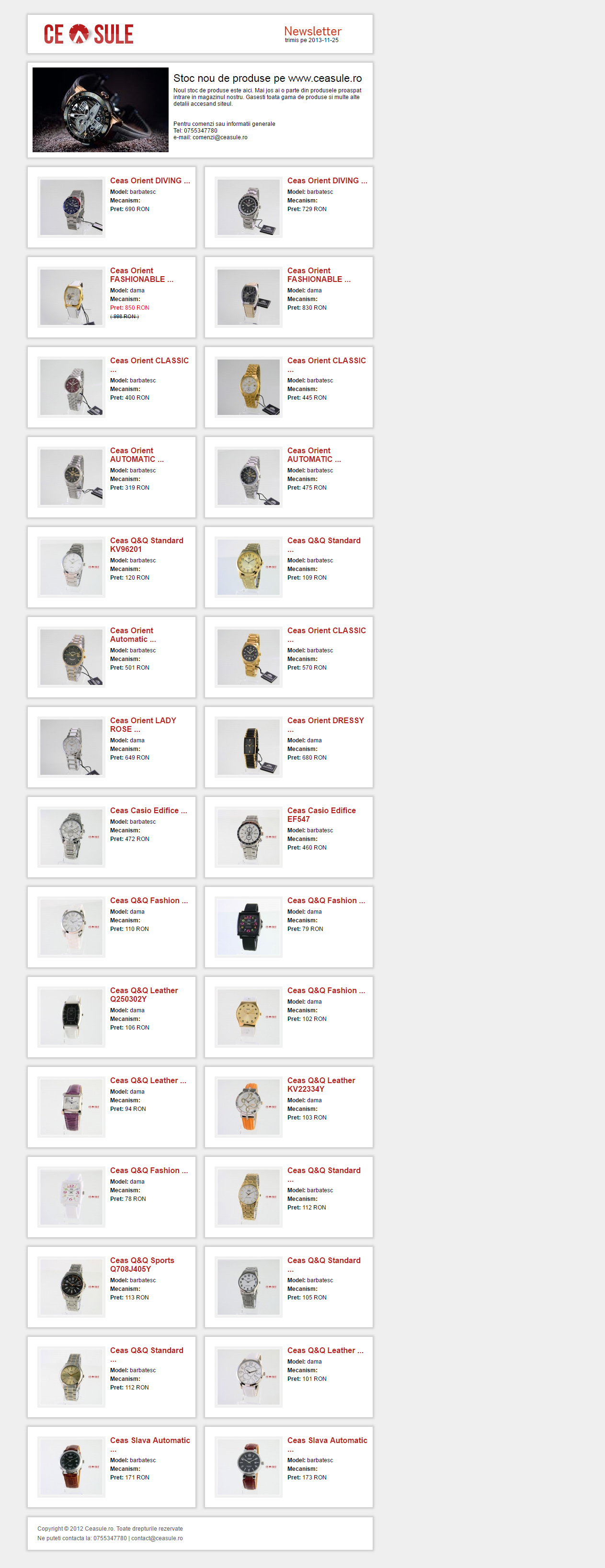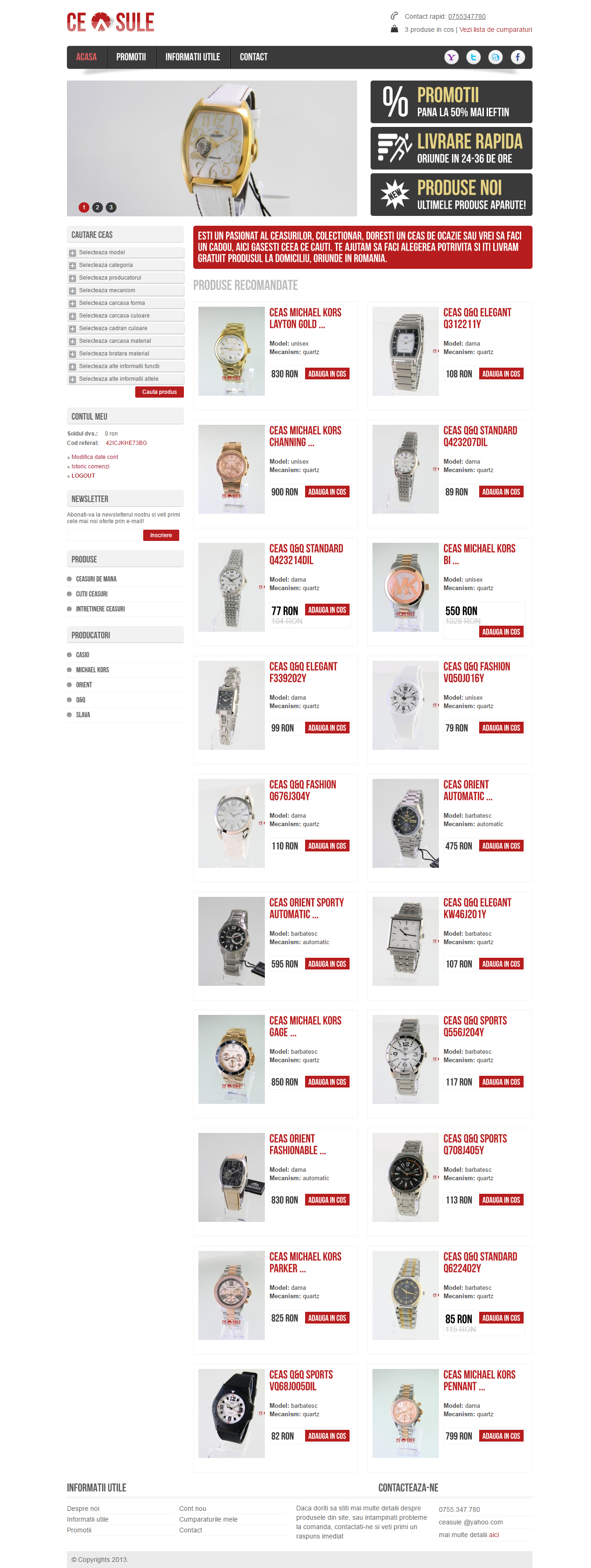 Magazin online de ceasuri, cu ajutorul caruia clientii is pot comanda ceasuri de mana, cat si alte produse legat de ceasuri. Are mai multe functionalitati, necesare pentru un magazin online, dar nu a fost nevoie de plata cu cardul din varii motive.